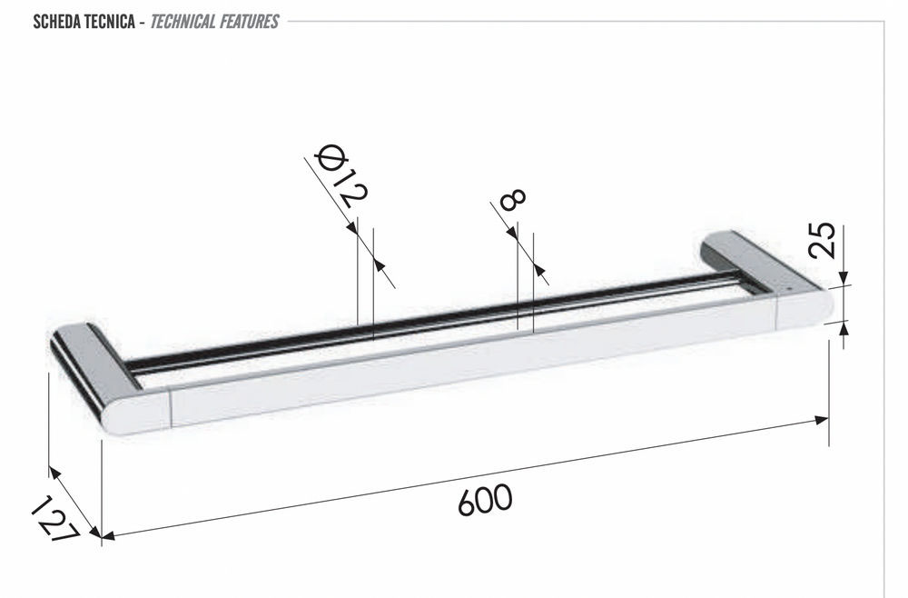 Полотенцедержатель двойной 60 см Remer Lounge LN33XV, сталь