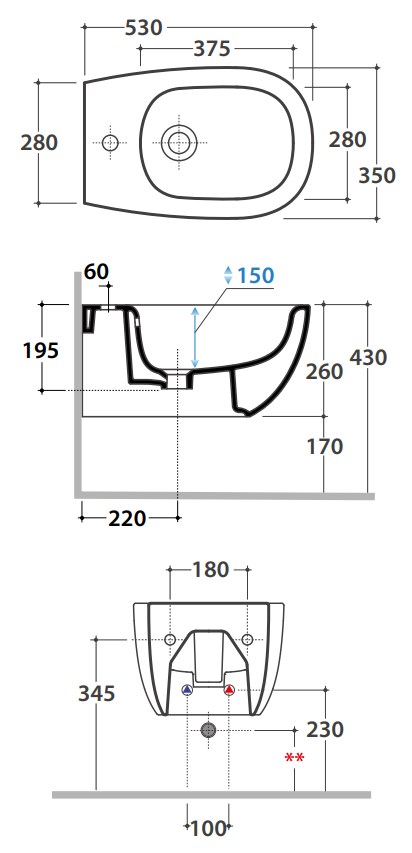 Биде подвесное Globo DAILY DNS09BO