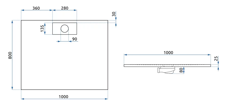 Душевой поддон Rea Bazalt Long white 80*100 K3320 купить в Гомеле, цена