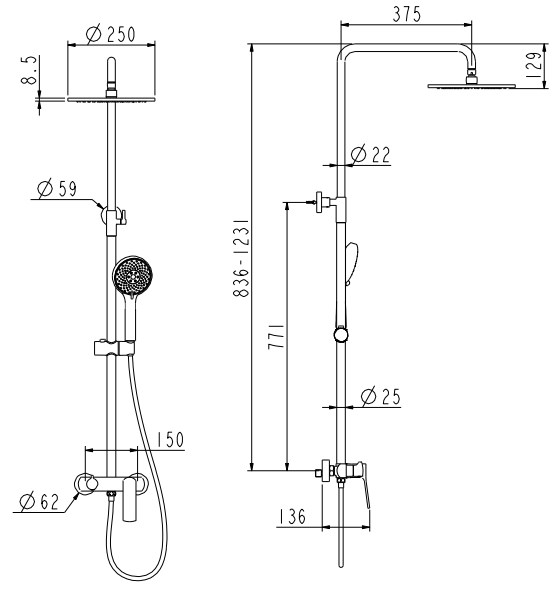 ручной душ, шланг 150 см |