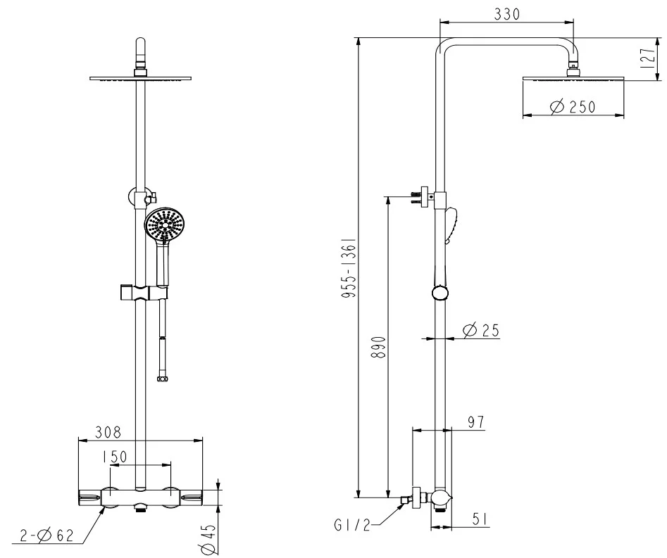 ручной душ, шланг 150 см |