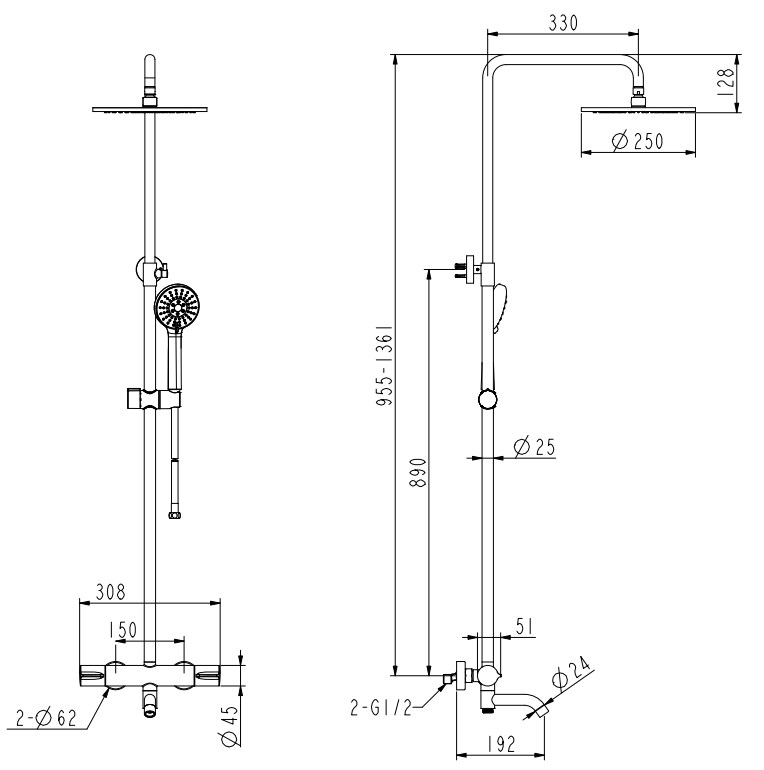 ручной душ, шланг 150 см |