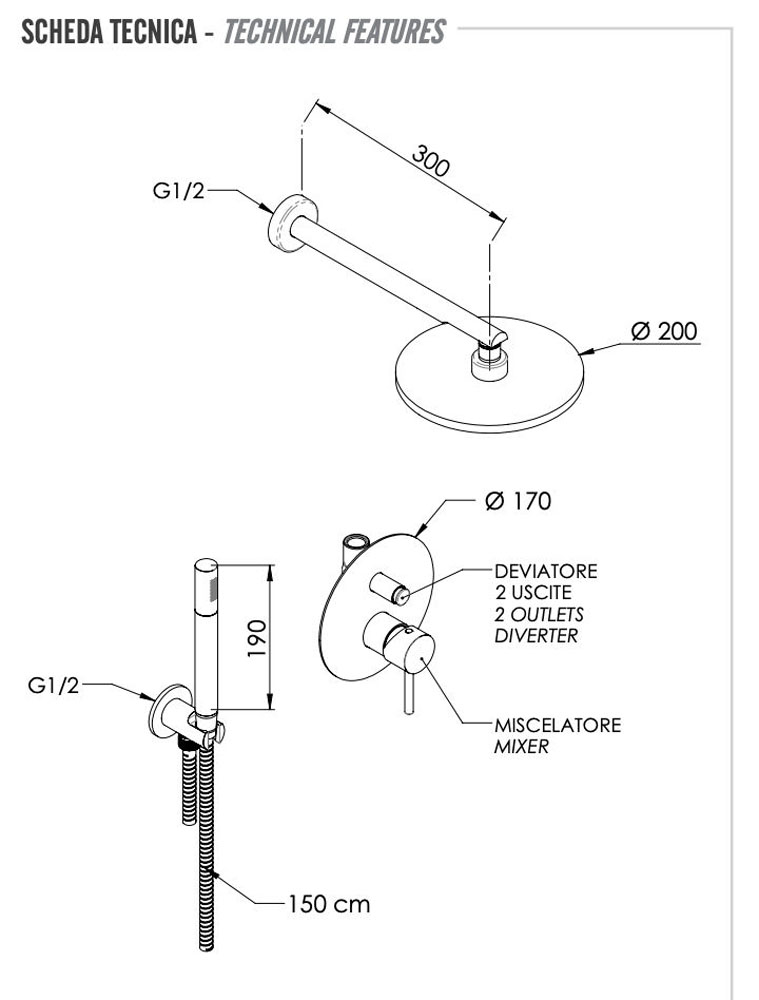 скрытая часть, ручной душ, шланг |
