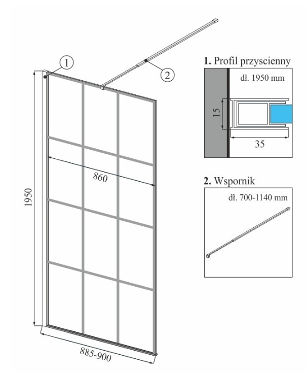 Душевая стенка Calani Soleo walk in 90 Black CAL-K6010 купить в Гомеле, цена