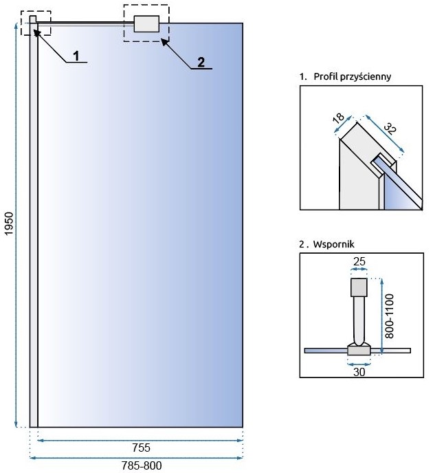 Душевая стенка Rea AERO 80x195 K7552 купить в Гомеле, цена