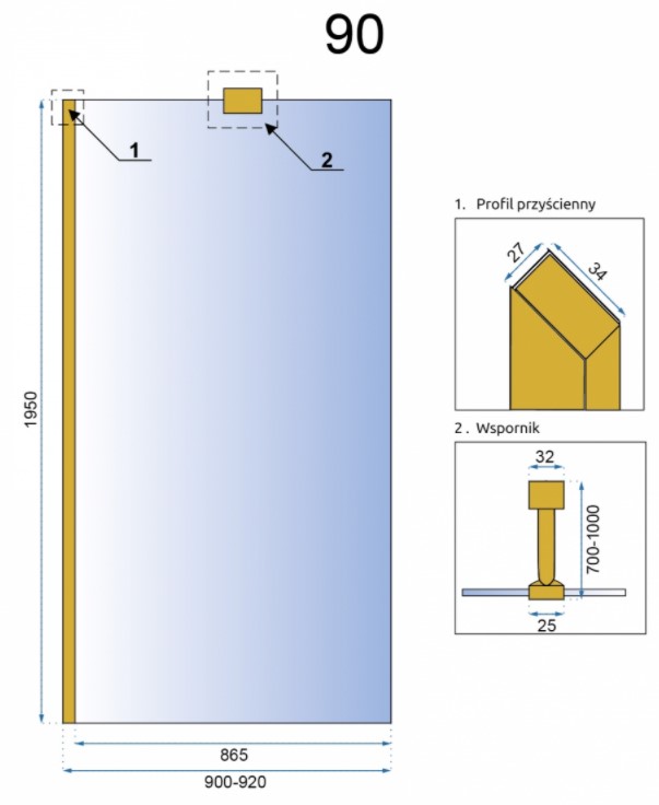 Душевая стенка Rea Aero Gold 90x195 K8442 купить в Гомеле, цена