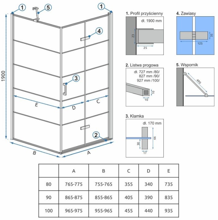 Душевая стенка Rea Molier Black 80 K8412 купить в Гомеле, цена