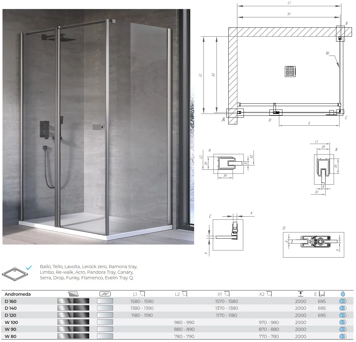 Душевая дверь Kolpa-San Andromeda D 140 silver brill transparent 516550 купить в Гомеле, цена