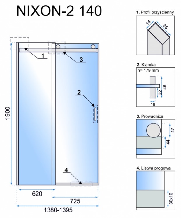 Душевая дверь Rea Nixon-2 140 правая K5007 купить в Гомеле, цена