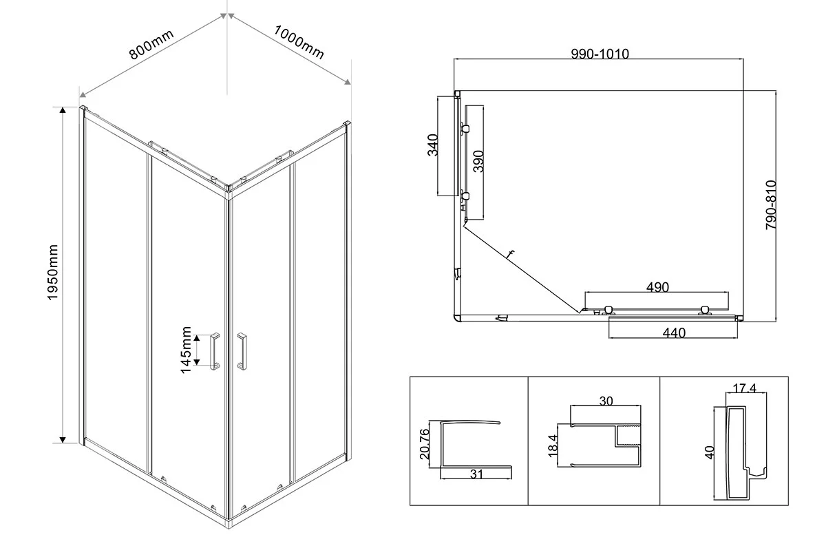 Душевой уголок Vincea City VSS-5CT8010CLGM купить в Гомеле, цена