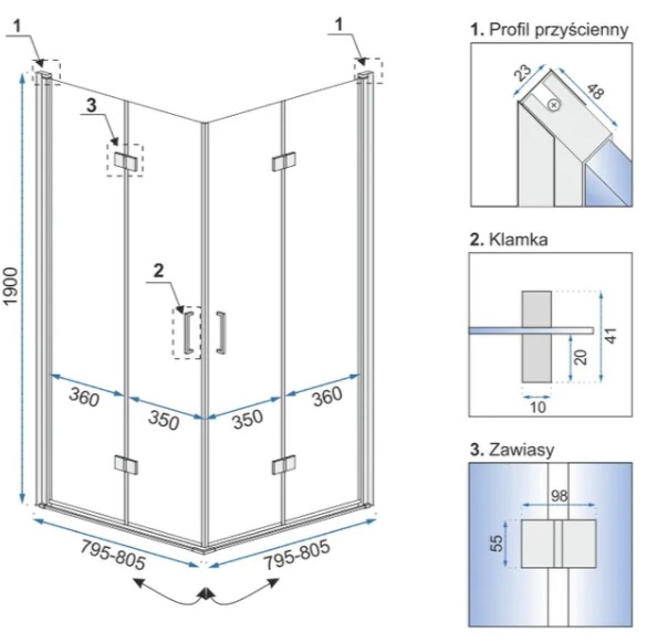 Душевой уголок Rea Fold N2 80x80 K9990