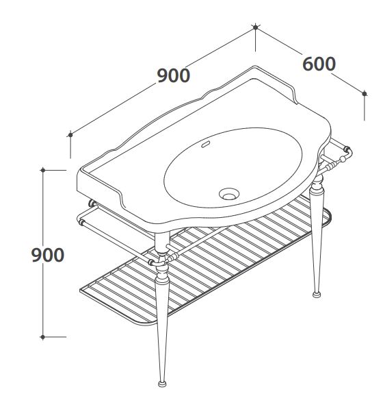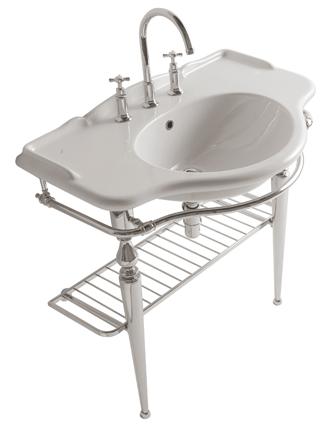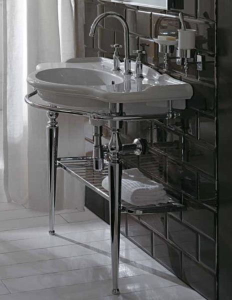 Напольная консоль для раковины PA056BI. Консоль оснащена держателем полотенца и металлической полкой-решеткой. Монтируется к стене.