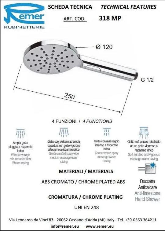 Ручной душ Remer 318MPX купить в Гомеле, цена