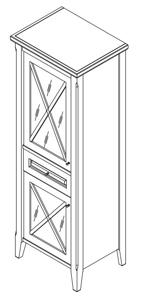 Шкаф-пенал с 2 дверьми и ящиком, правое открывание, фасады со стеклом. Выпуск только в отделке 075 NOCE GVAR из реестра CLASSIC. Внутри 3 стеклянные полки