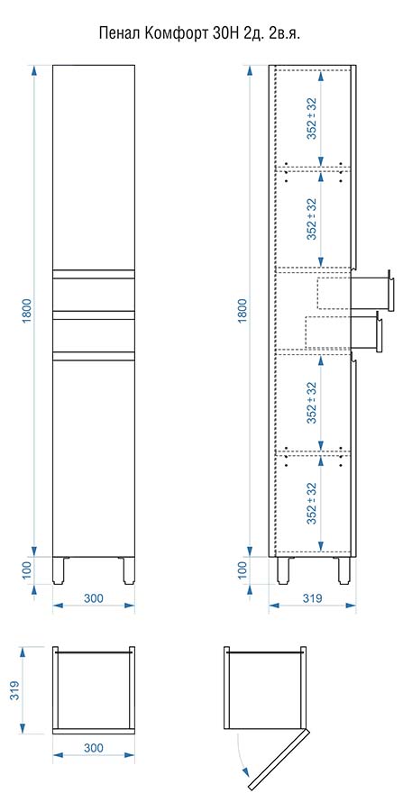 Пенал напольный Vela Мира 30Н2 (двери и ящики) петли правые RS623484 купить в Гомеле, цена