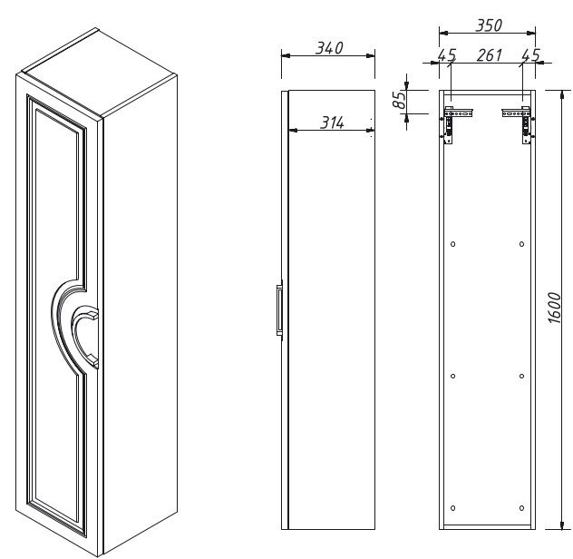 Шкаф-пенал подвесной с дверью (правое открывание). Выпускается в любых отделках из реестра "CONCEPT"
