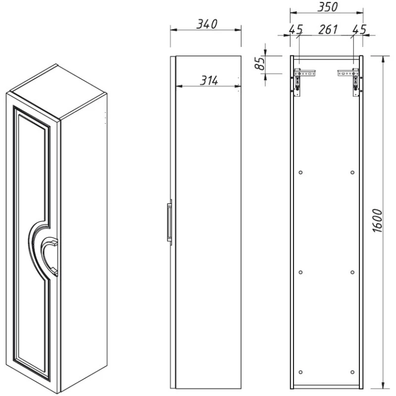 Пенал подвесной Caprigo Valletta L 35350L-TP811 купить в Гомеле, цена