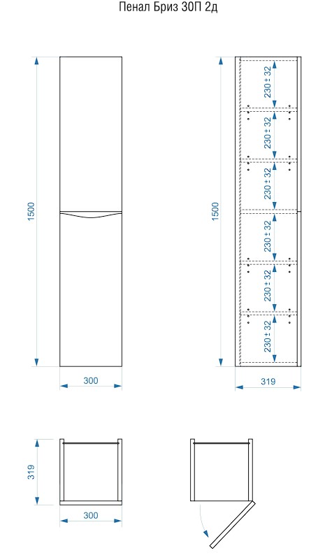 Пенал подвесной Vela Бриз 30П (двери) петли правые RS623466 купить в Гомеле, цена