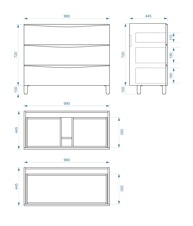 Тумба напольная Vela Бриз 100Н три ящика под Milen TU270602 купить в Гомеле, цена