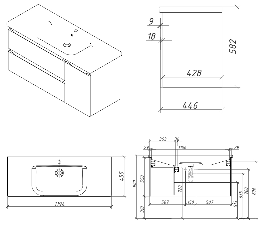 Тумба подвесная Caprigo Forte 100 36117R-SF022 купить в Гомеле, цена
