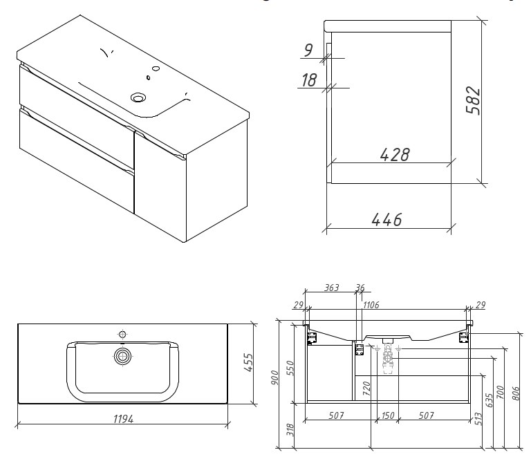 Тумба подвесная Caprigo Forte 100 36117R-SF027 купить в Гомеле, цена