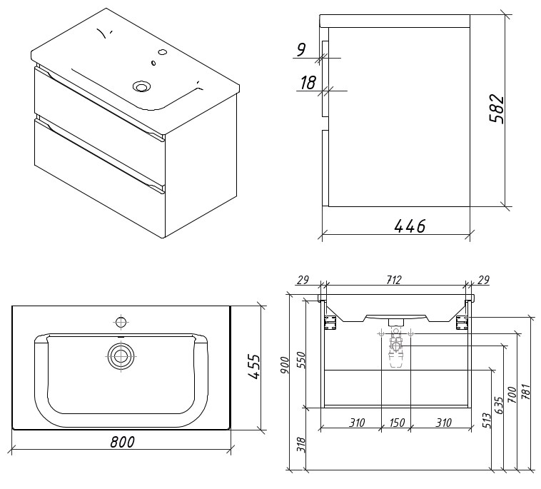 Тумба подвесная Caprigo Forte 80 36112-SF027 купить в Гомеле, цена