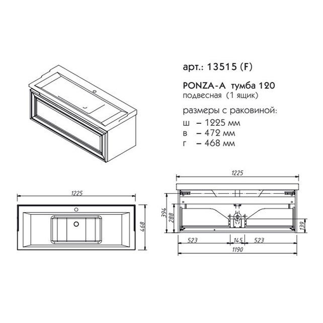 Тумба подвесная Caprigo Ponza 120 13515-B231 купить в Гомеле, цена