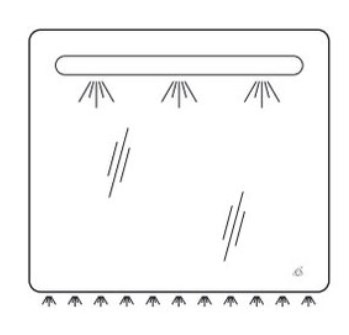 Двойная светодиодная фронтальная подсветка. Светодиодная подсветка зоны смесителя. Сенсорный выключатель в форме вензеля CAPRIGO. Влагостойкое исполнение,
