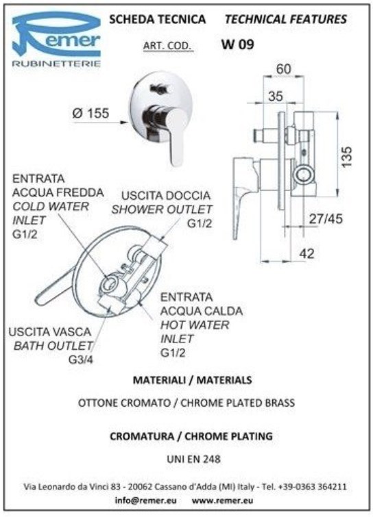 Набор смесителей для ванной комнаты Remer Winner W0910315RMOI купить в Гомеле, цена