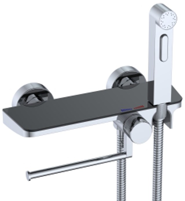 Настенный смеситель с гигиеническим душем, с полочкой и бумагодержателем