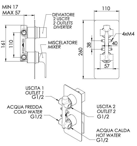Смеситель для душа Remer Absolute AU92BG, золото брашированное