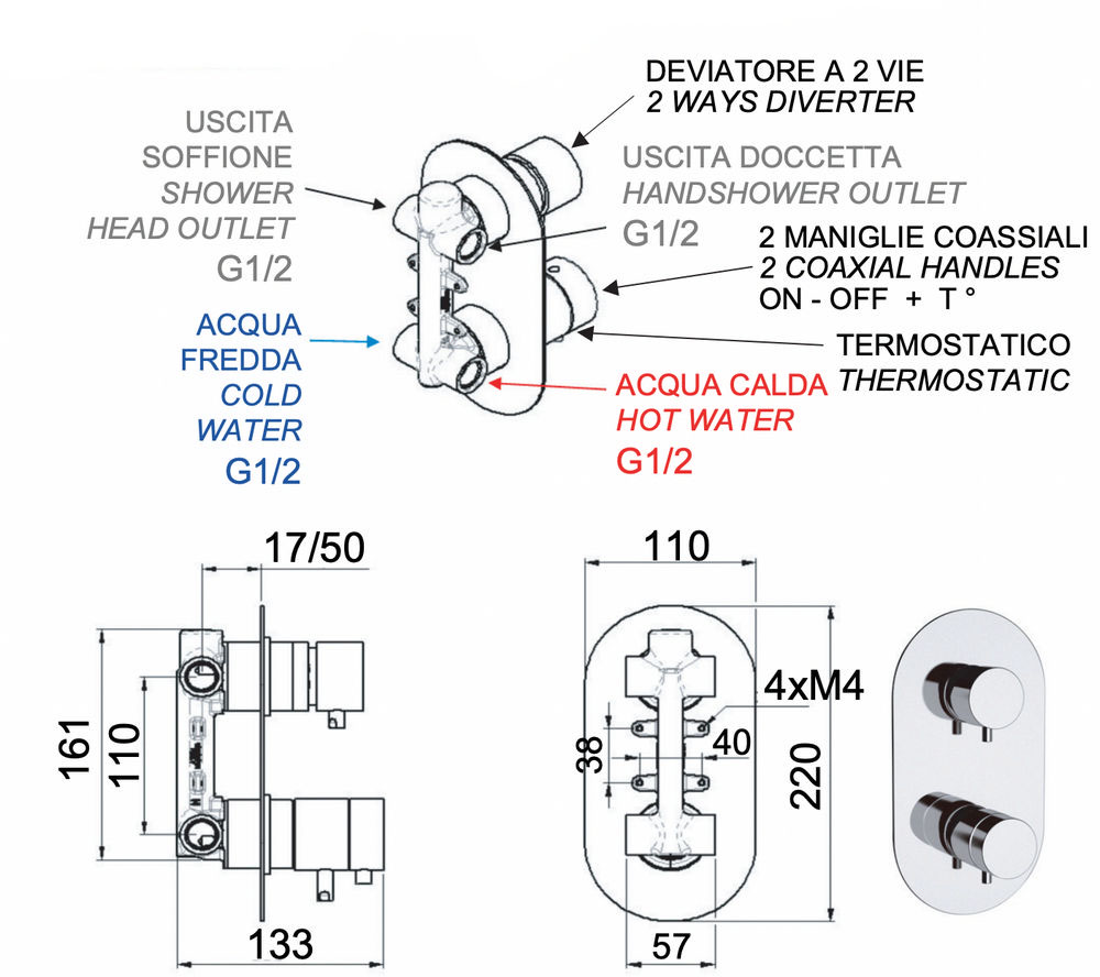 Смеситель для душа Remer Elegance NT92DO, золото глянцевое