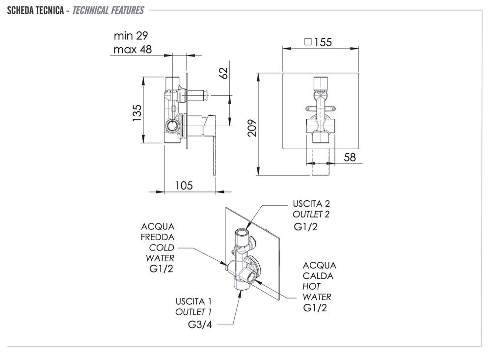 Смеситель для душа Remer Qubika Q09