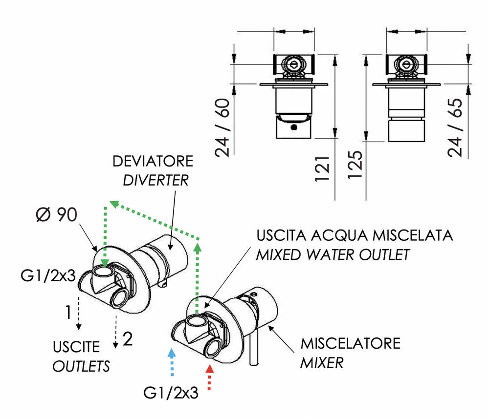 Смеситель для душа Remer X Style X96RP, медь брашированная