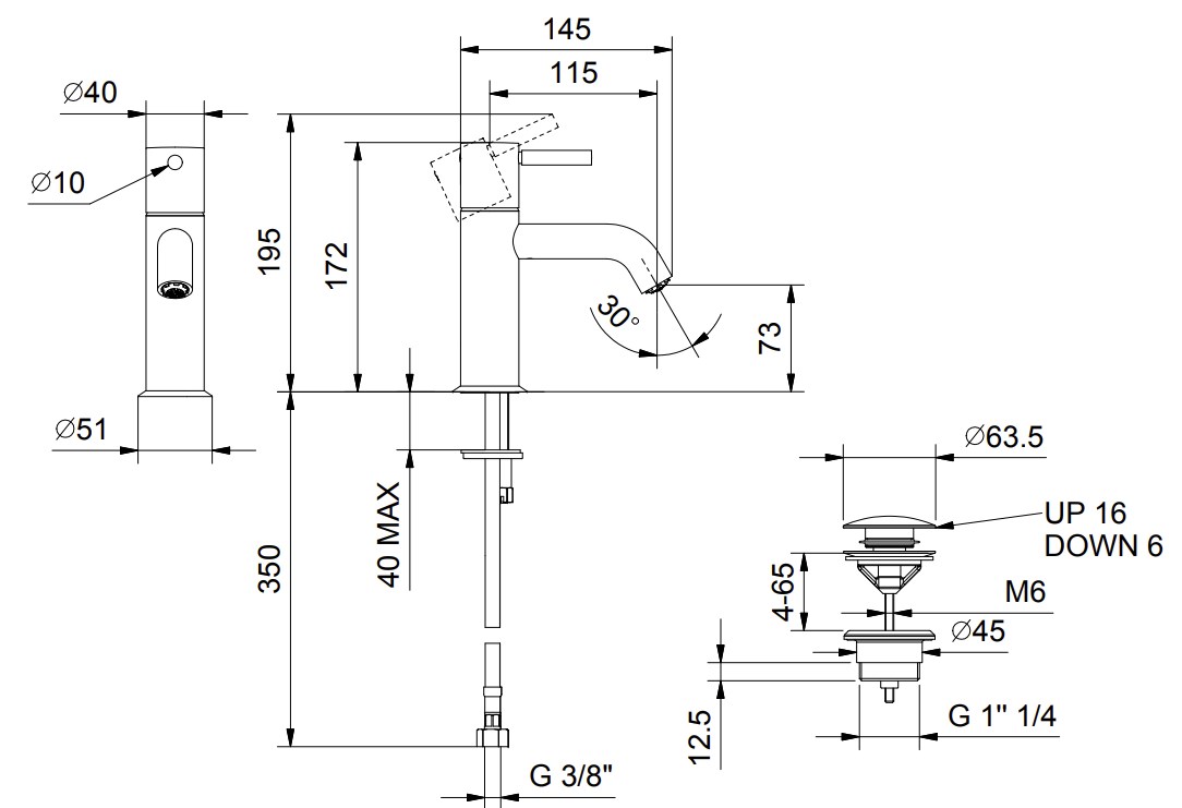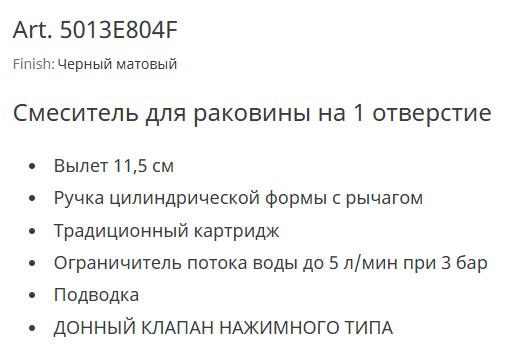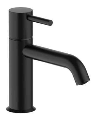 5013E804F NOSTROMO Смеситель для раковины на 1 отверстие вылет 11,5 см Ручка цилиндрической формы с рычагом ограничитель потока воды до 5 л/мин при 3 бар подводка ДОННЫЙ КЛАПАН НАЖИМНОГО ТИПА - Черный матовый