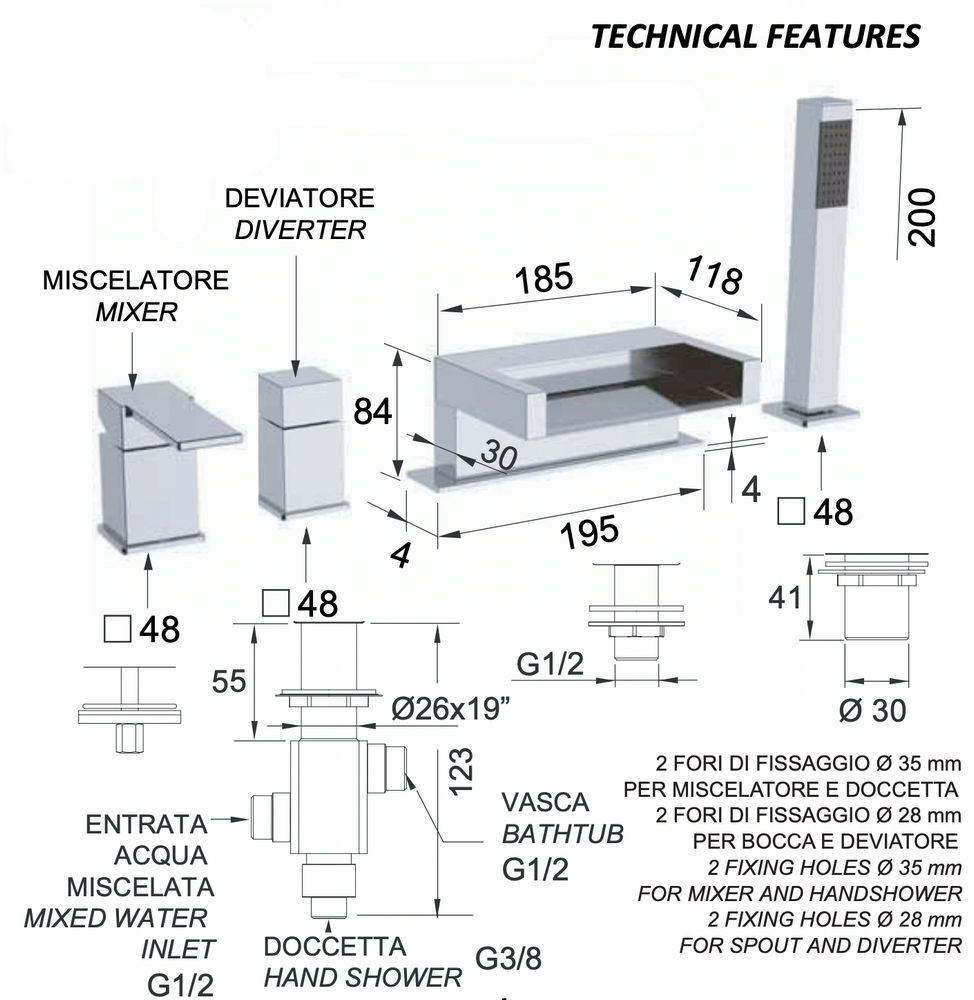 Смеситель для ванны Remer Qubika Cascata QC06BO, белый матовый