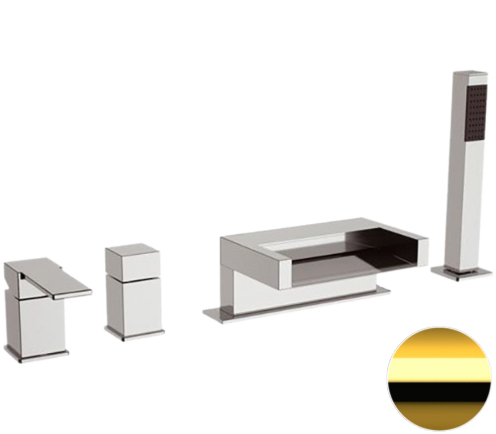 Смеситель для ванны Remer Qubika Cascata QC06DO, золото глянцевое