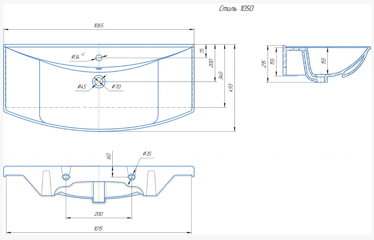 Умывальник Caprigo Стиль 1050