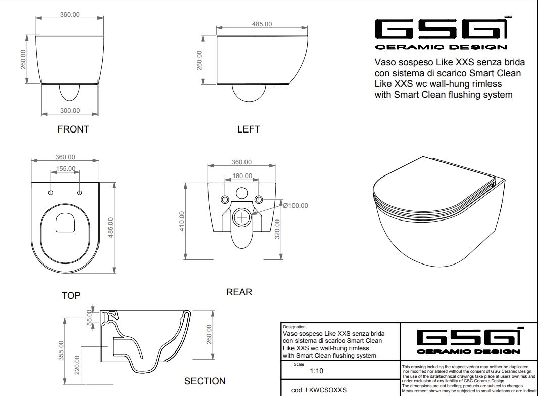 Унитаз подвесной GSG Ceramic Design Like LKWCSOXXS001 укороченная