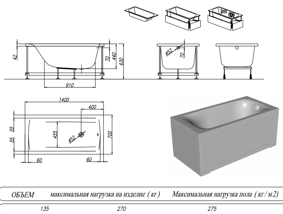 Ванна акриловая Kolpa-San Evelin 140x70 купить в Гомеле, цена