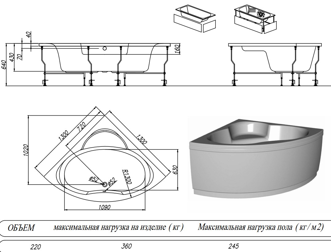 Ванна акриловая Kolpa-San Royal 130x130 купить в Гомеле, цена