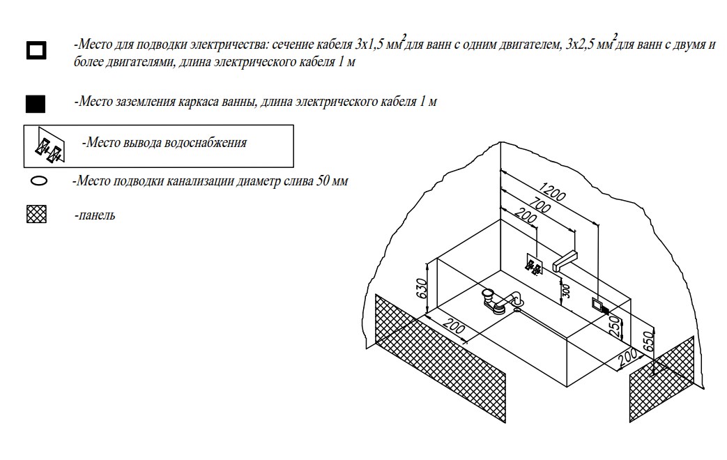 Ванна изготовлена из высококачественного акрила Lucite с толщиной листа не менее 4 мм, имеет безупречный внешний вид и долгий срок службы