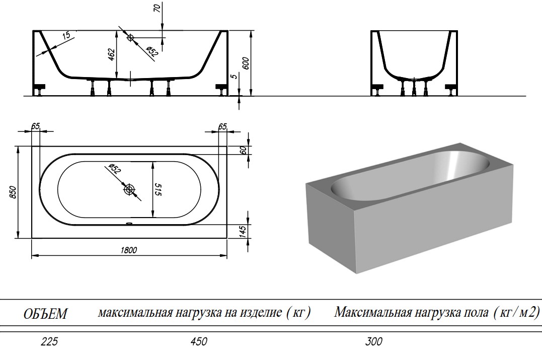 Важно! В указанную стоимость входит собранная ванна на каркасе, с установленным сливом-переливом в цвете хром.