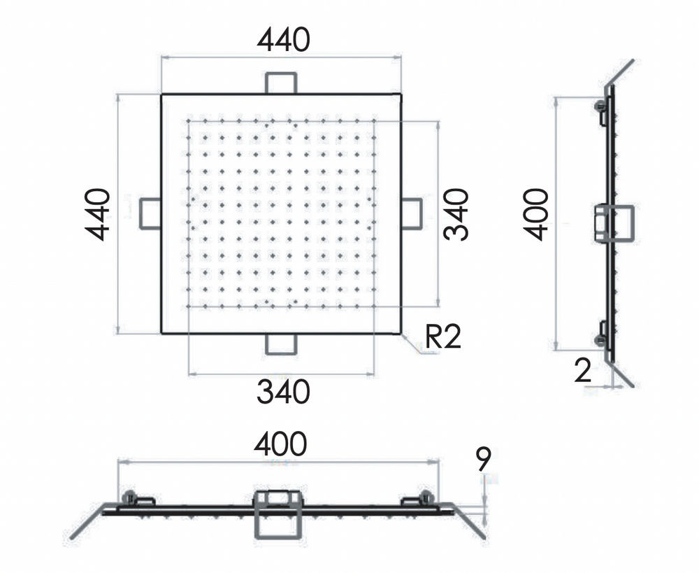 Верхний душ потолочный 44 см Remer 357EFS44NO, черный матовый