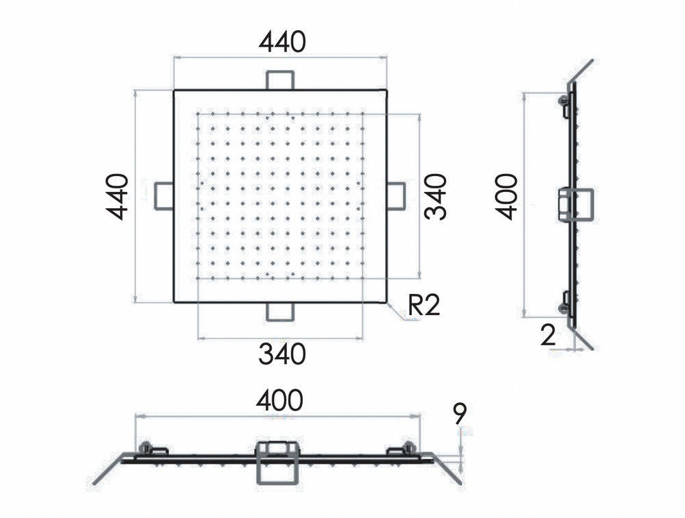 Верхний душ потолочный 44 см Remer INOX SS357EFS44