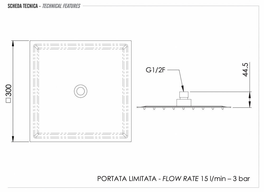 Верхний душ с шарнирным соединением 30 см Remer 357UFS30X