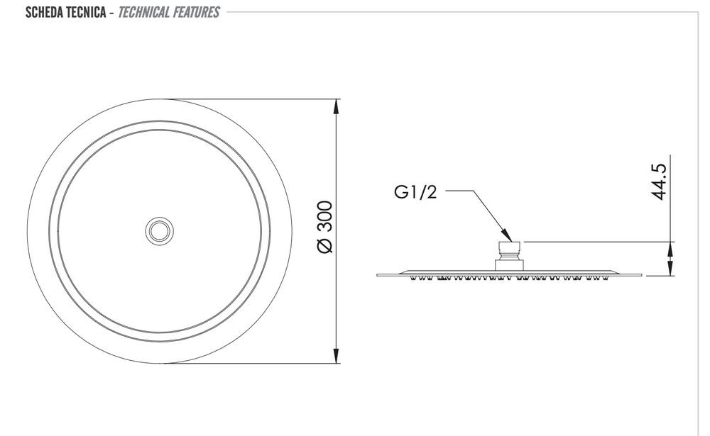 Верхний душ с шарнирным соединением 30 см Remer INOX SS357UFM30X, нержавеющая сталь